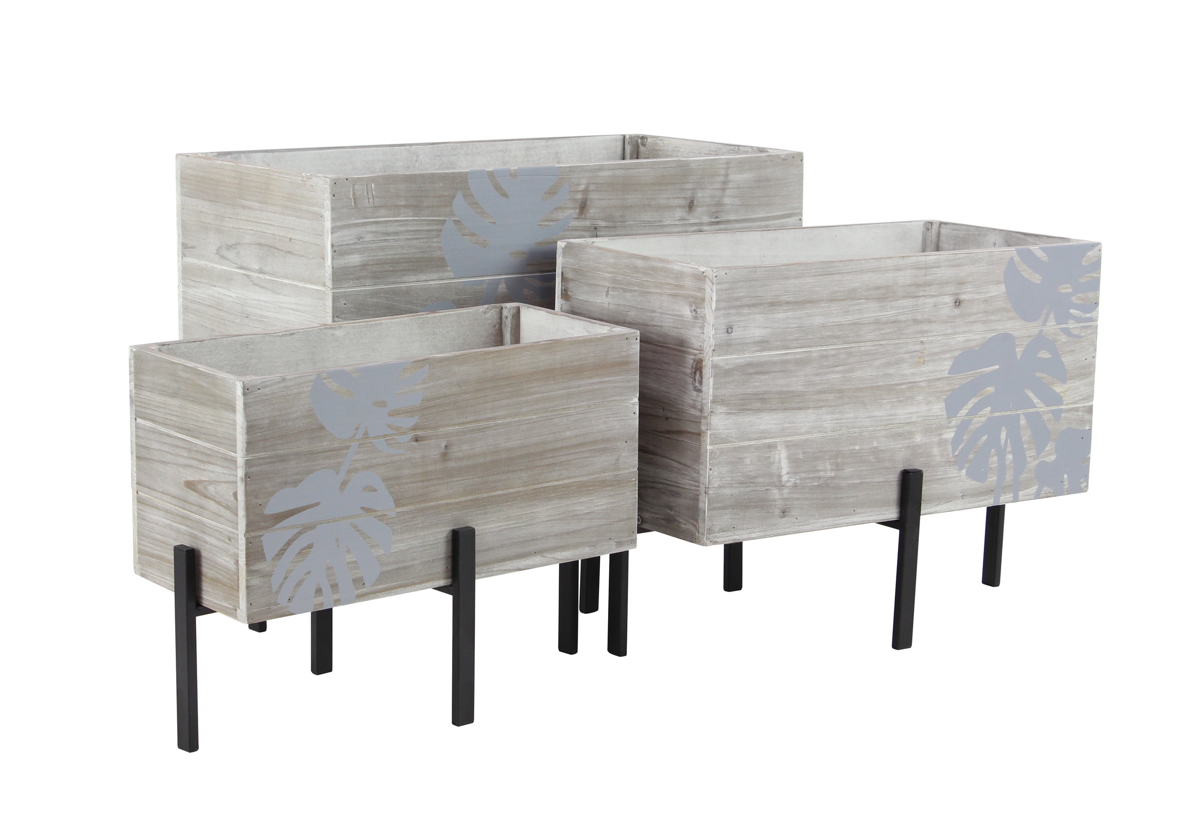 Decmode Rustic 13 16 And 19 Inch Wood And Iron Rectangular Planters With Stands Set Of 3 Walmart Com